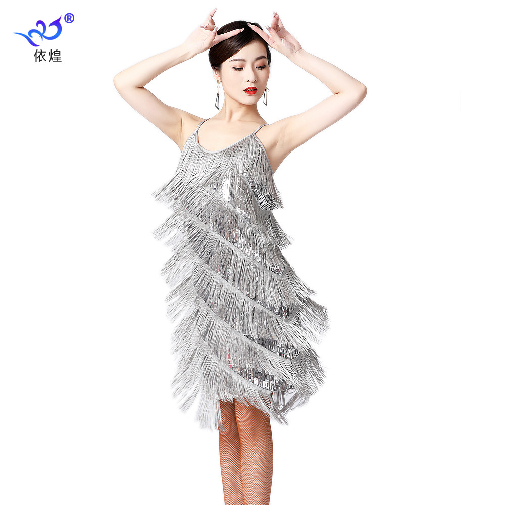Harness Bright Sheet Streaming Suskirt V Collar Foreign Dress Latin Dance Dress Dance Dancer Dance Performance Costume stage Performance Contest