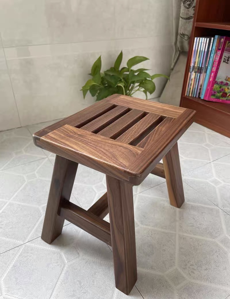 Hupeach Wood Small Bench Solid Wood Black Walnuts Stool Home Minimalist Modern Stool
