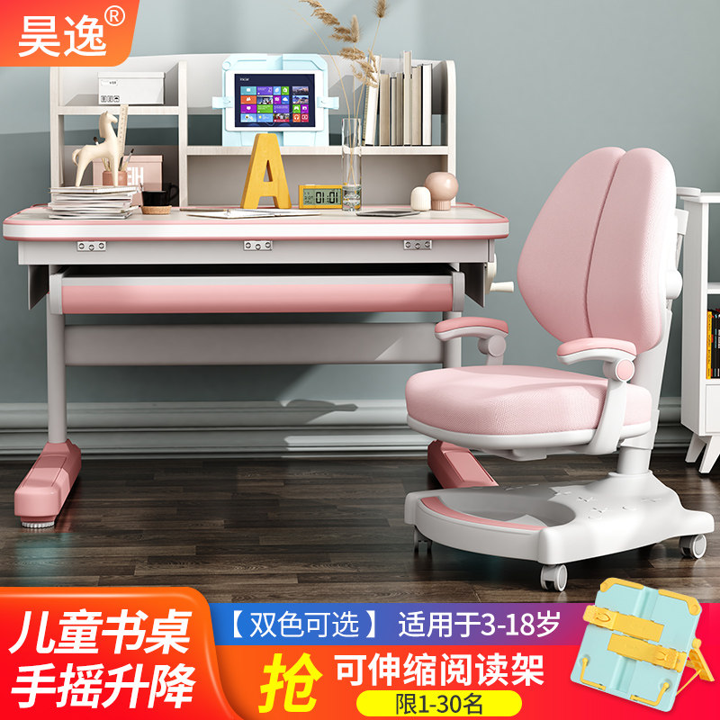 Ho Comfort Children Elementary School Students Study Table And Chairs Solid Wood Suit lift Home Bedroom modern minimalist Composition desk