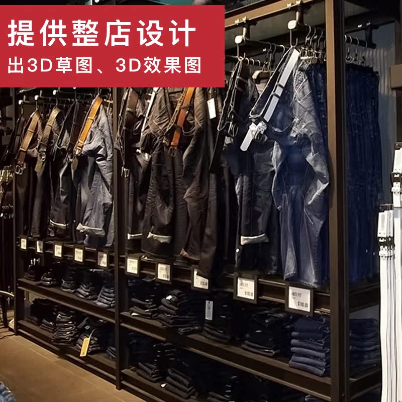 Industrial wind jeans rack hanger floor clothing display rack hanger retro design exclusive custom metal shelf