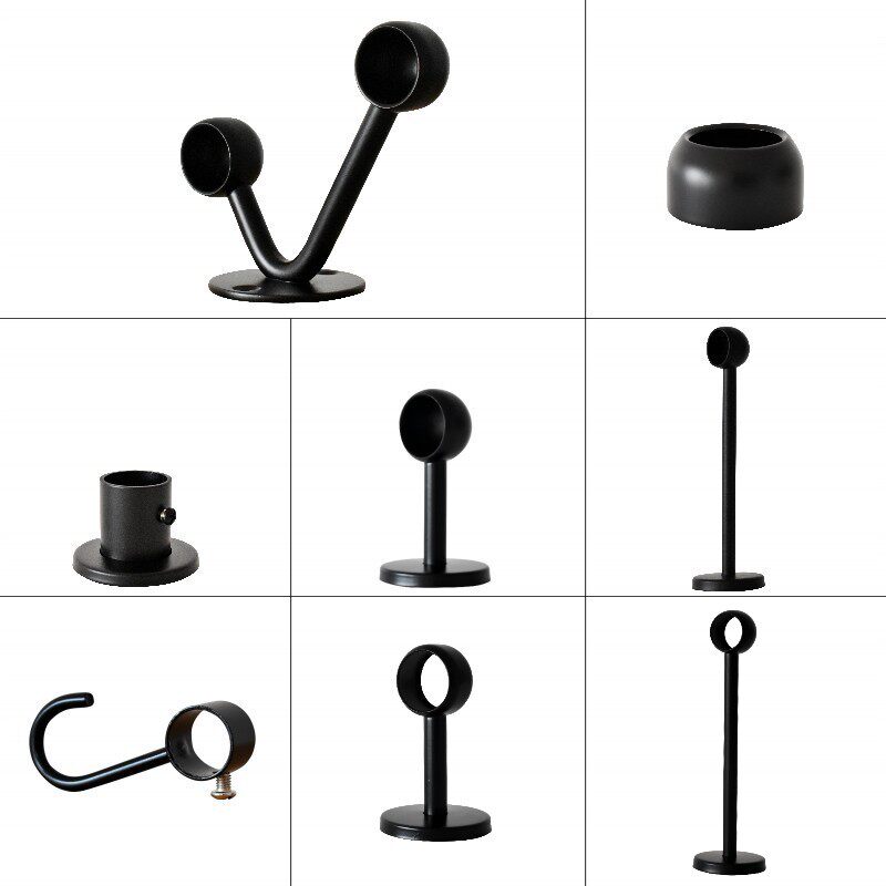 Hujian shower curtain rod tube seat black drying rod supercharged hole-free seat hanger rod fixed support clothes drying rod fastening seat