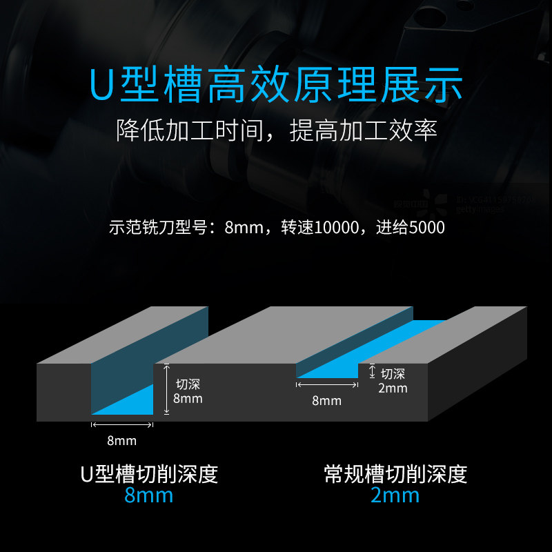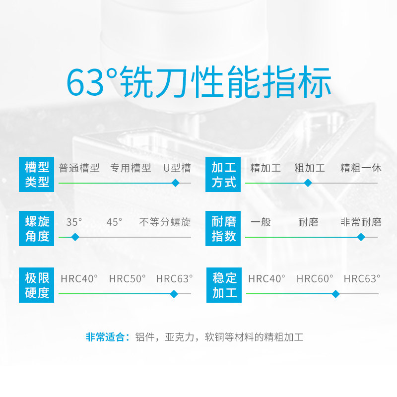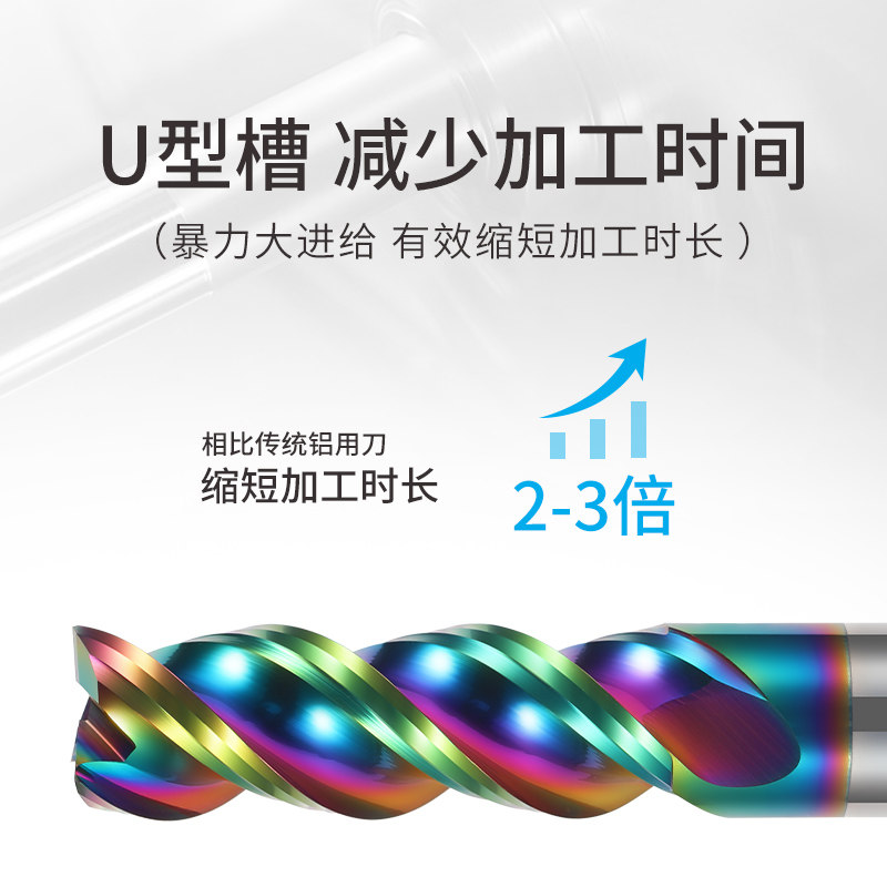 Delixing 63-degree tungsten carbide 3-edged aluminum milling cutter U-groove high-efficiency aluminum alloy special coating tool