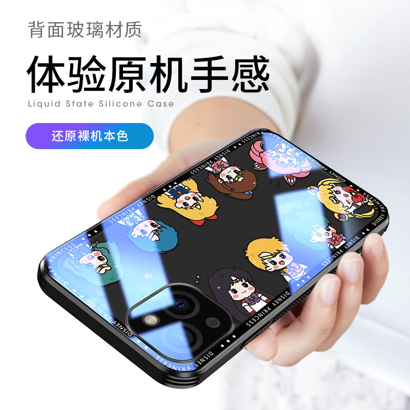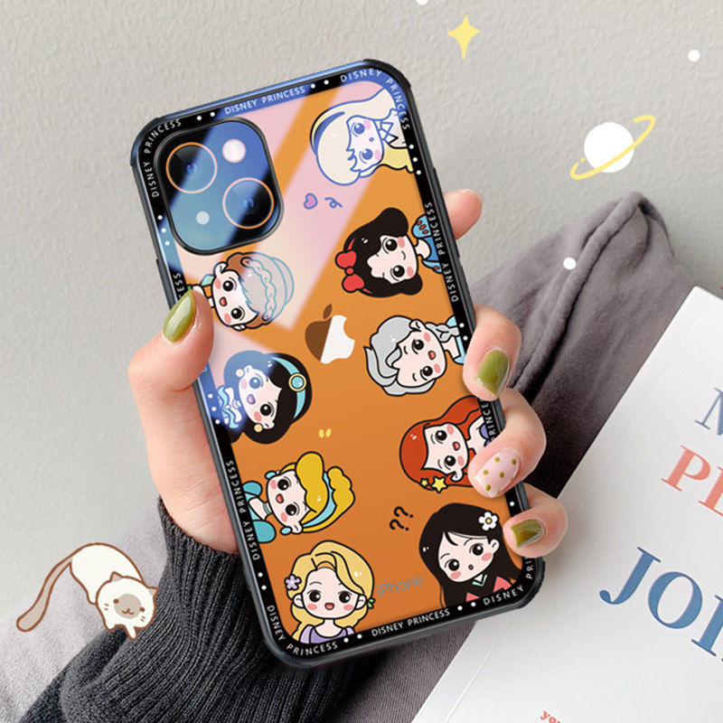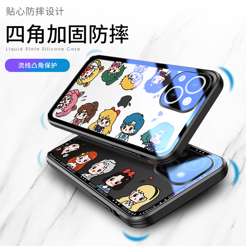 iPhone 13 mobile phone case transparent glass Q princess Apple 13pro women's high-end cute lens all-in-one 13promax personalized creative new internet-famous ins