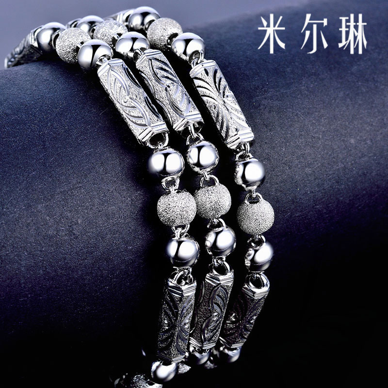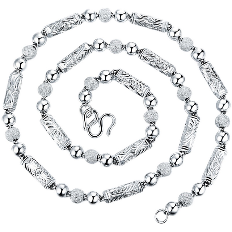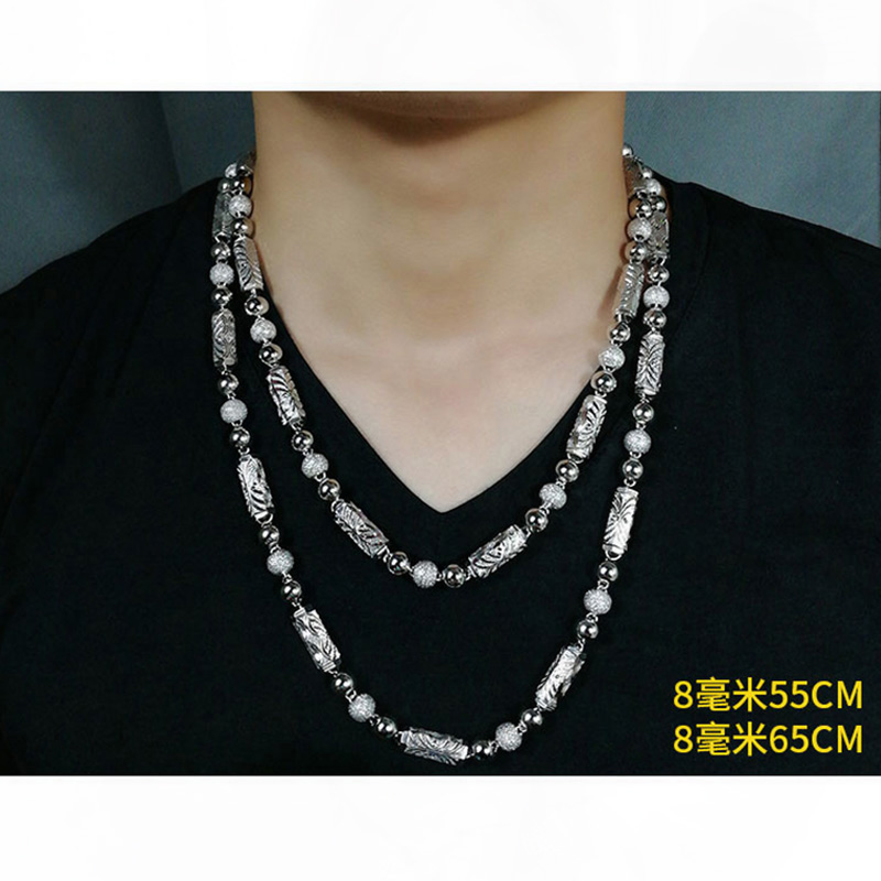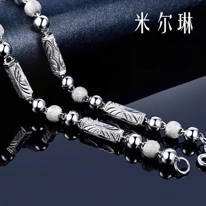 Men's necklace S925 pure silver jewelry is imitated platinum large coarse platinum platinum hexagonal tube transshipment bead
