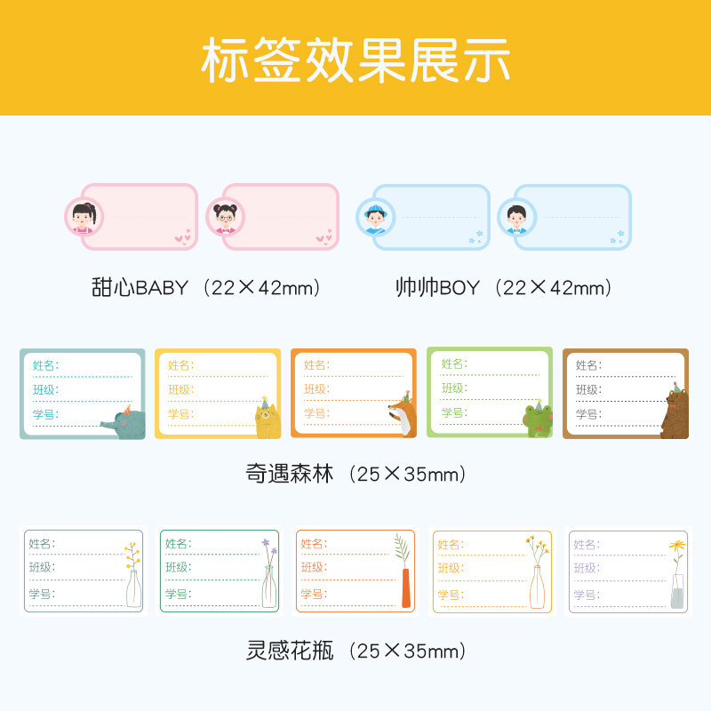Seichen D101 Color Label Paper Home Office logo Kindergarten Children's name stickers Cartoon cute students Stationery Mobile phone Waterproof Adhesive without scar Thermal stickers