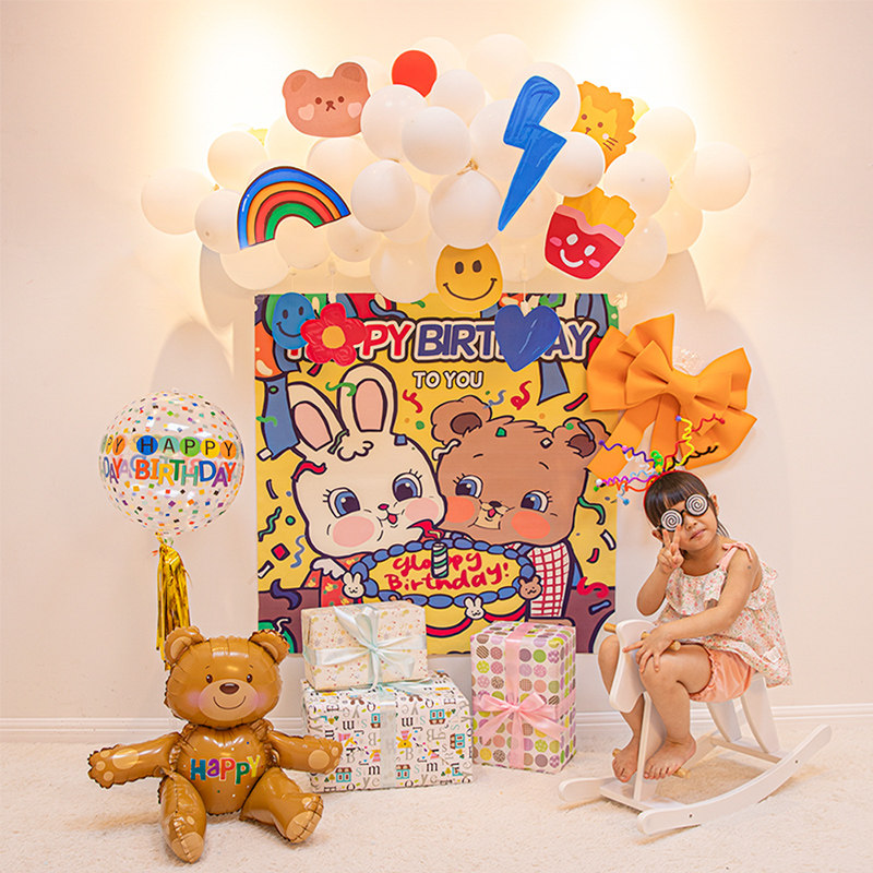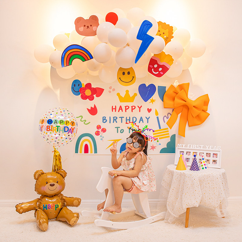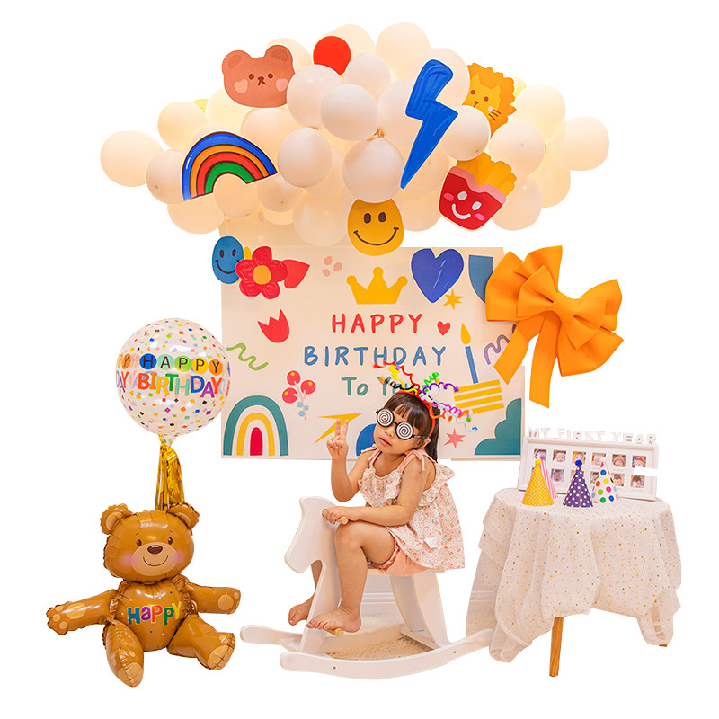 ins little fresh baby a week birthday party Balloon Package Cartoon Background Wall Decoration Scene Arrangement