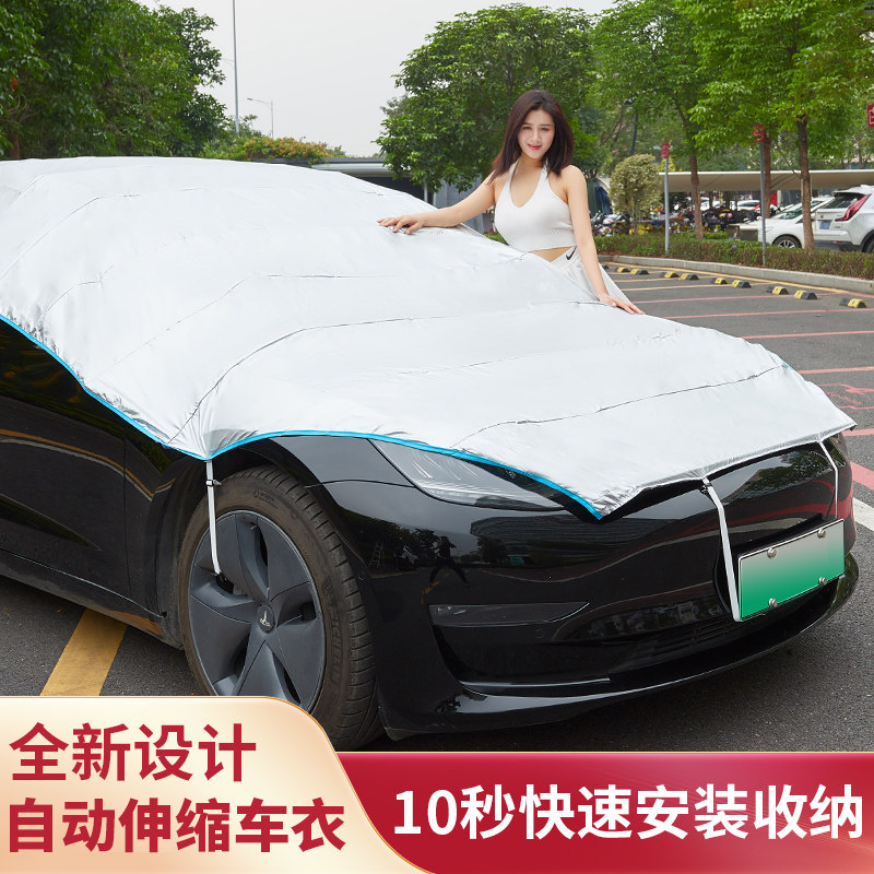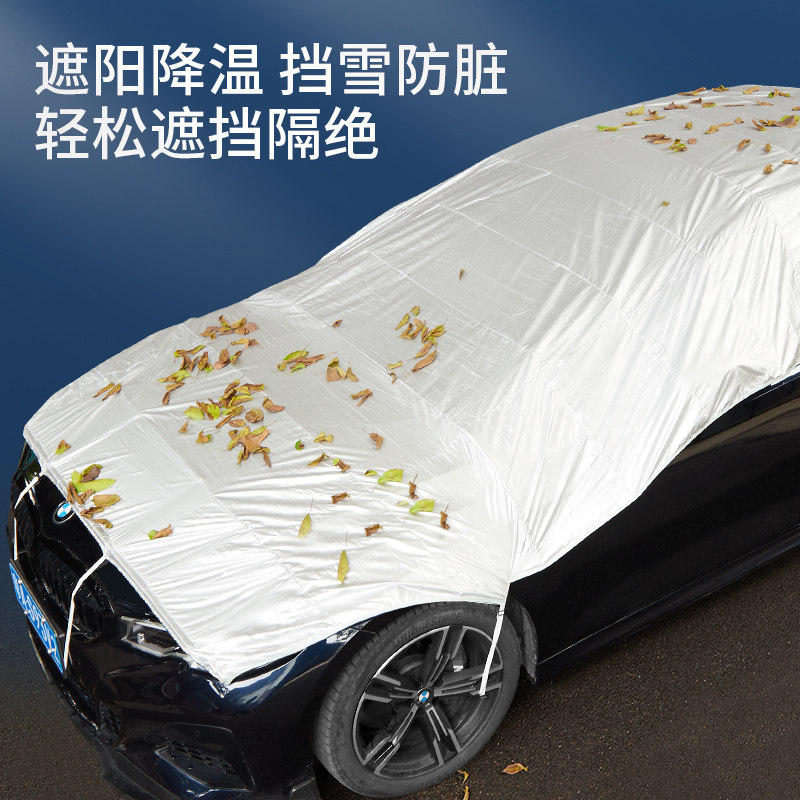 Car half cover car cover four seasons sunscreen, dustproof and heat insulation Oxford cloth car cover rain and bird excrement car cover automatic expansion and contraction
