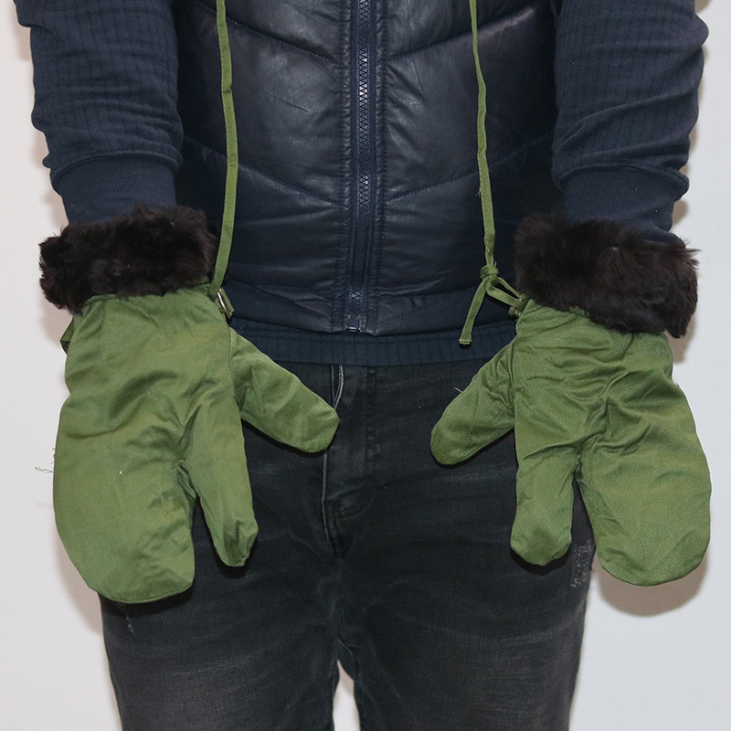 Jun green short tube three-finger cotton gloves rabbit fur gloves 78 gloves super warm sheepskin wool gloves for men and women
