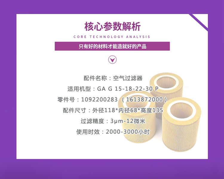 Atlas air compressor GA15 18 22 30 30 air filter core 1092200283 1613872000-Taobao