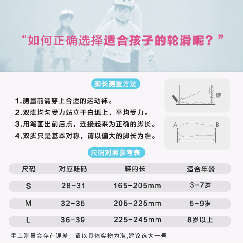 Scode 28-31 suitable for feet length 16-20cmM code 32-35 suitable for feet length 20 5-23cmL code 36-39 suitable for feet long 23-25cm