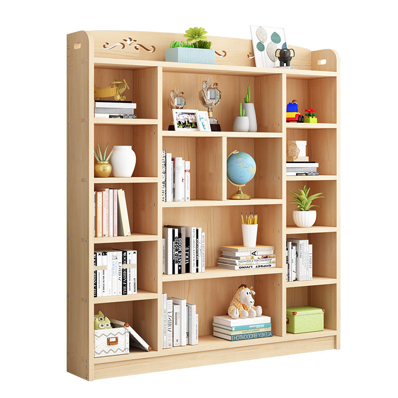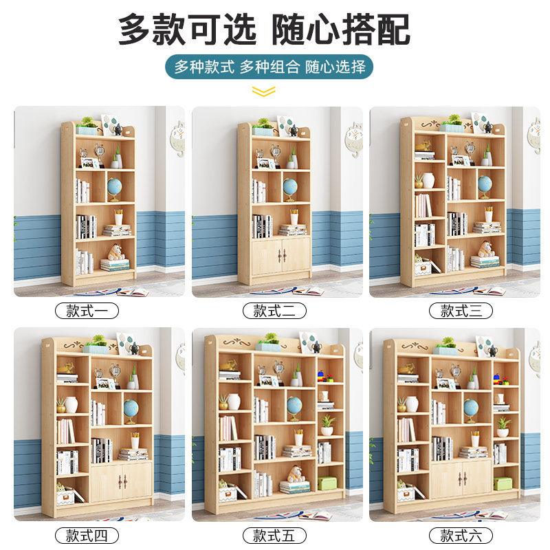 Log all solid wood pine floor-to-ceiling bookcase rack students home simple bookshelf children's modern wall bookcase