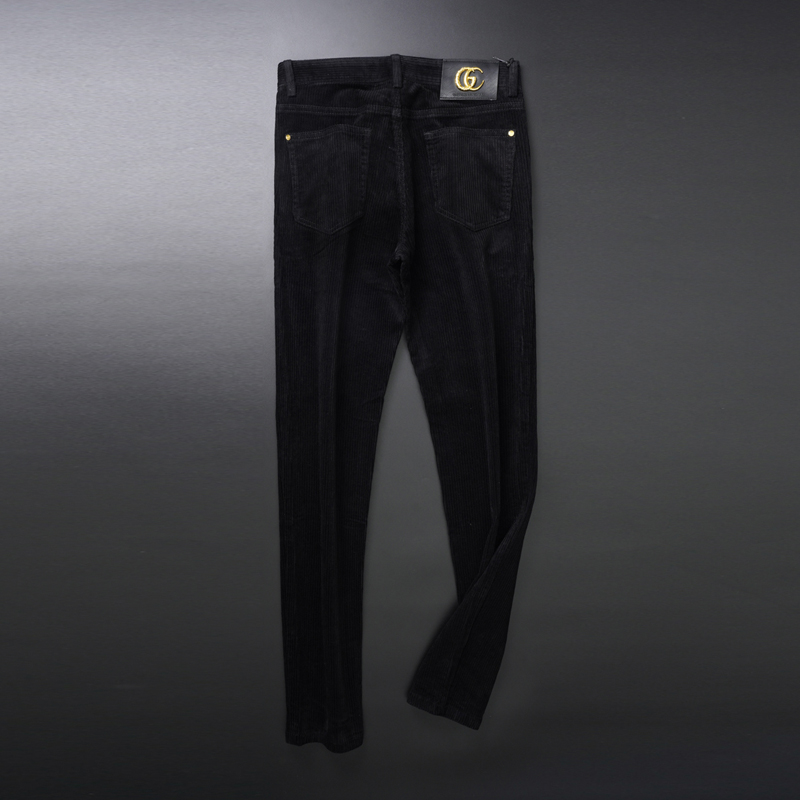 Autumn and winter men's Korean version of slim pure black corduroy casual pants men's small straight elastic strip velvet pipe pants