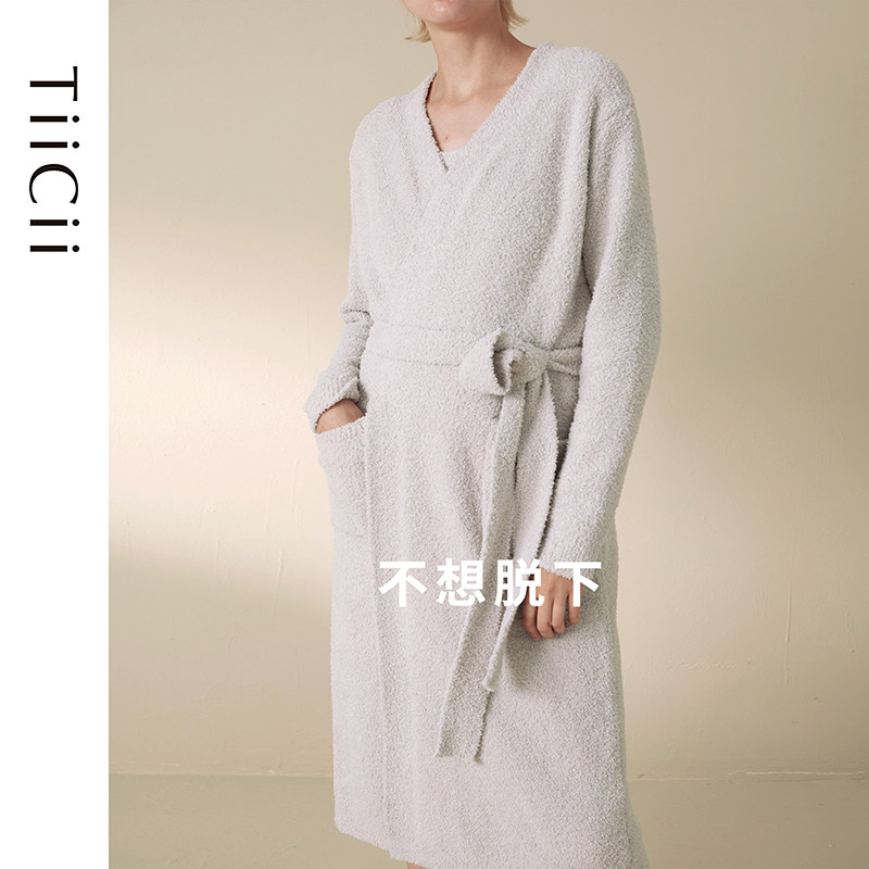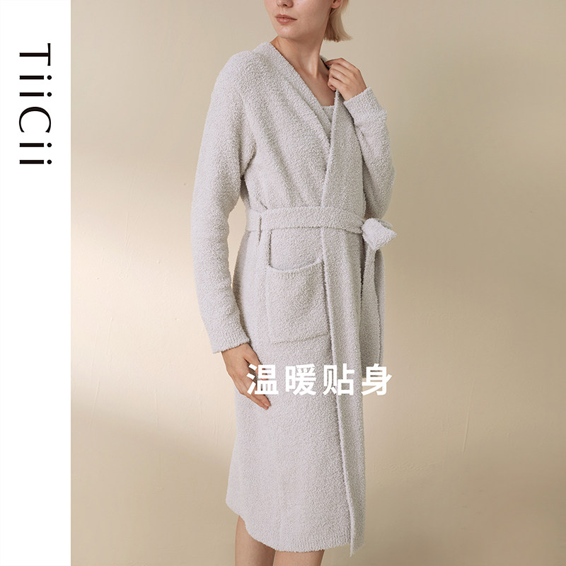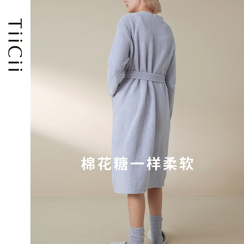 TiiCii light suede style pajamas warm and intimate female spring autumn cotton candy comfortable home Two sets knitted sleeping dress