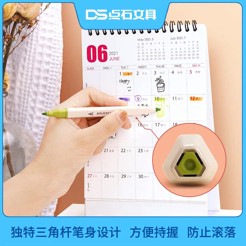 Point Stone DS820 triangular soft and hard double head fluorescent pen comeback ancient macaron redifficult hand account painting 24 Yingying light pen