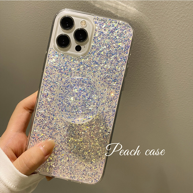 Peach shell gold leaf flash powder iphone13 mobile phone protective shell suitable for apple 12 11pro max protective sleeve x silicone xr female xsmax new bracket 8plus soft