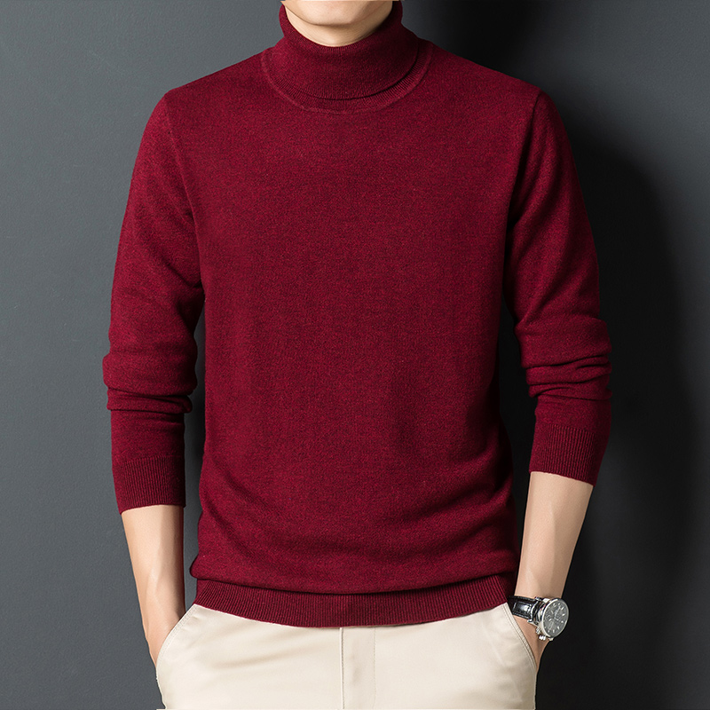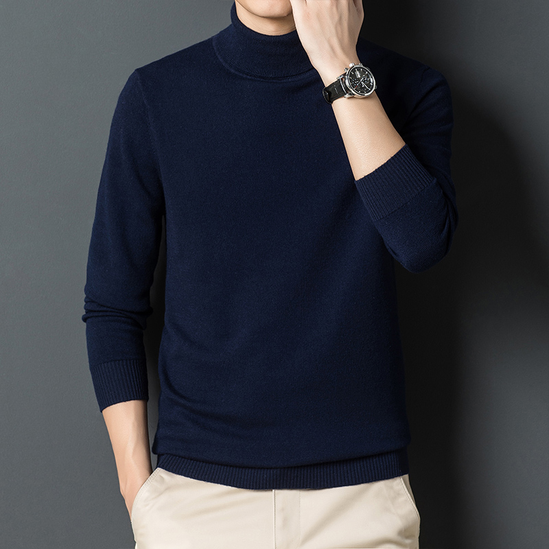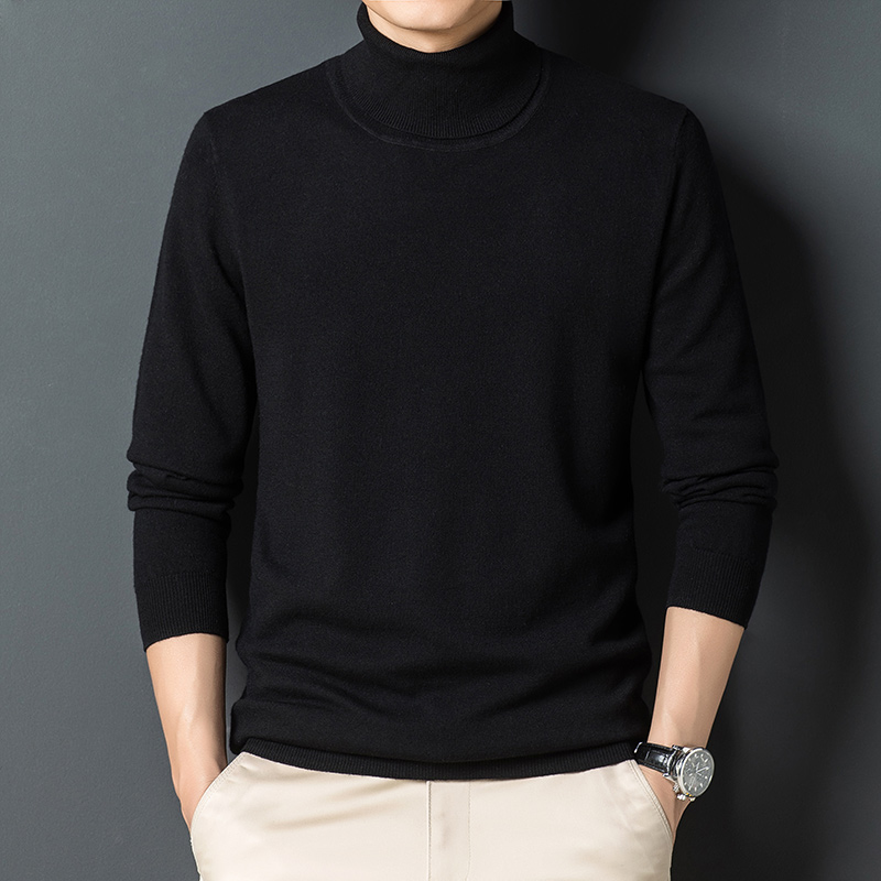 Pure wool sweater men autumn winter thick winter loose large size base shirt high neck solid color sweater sweater sweater