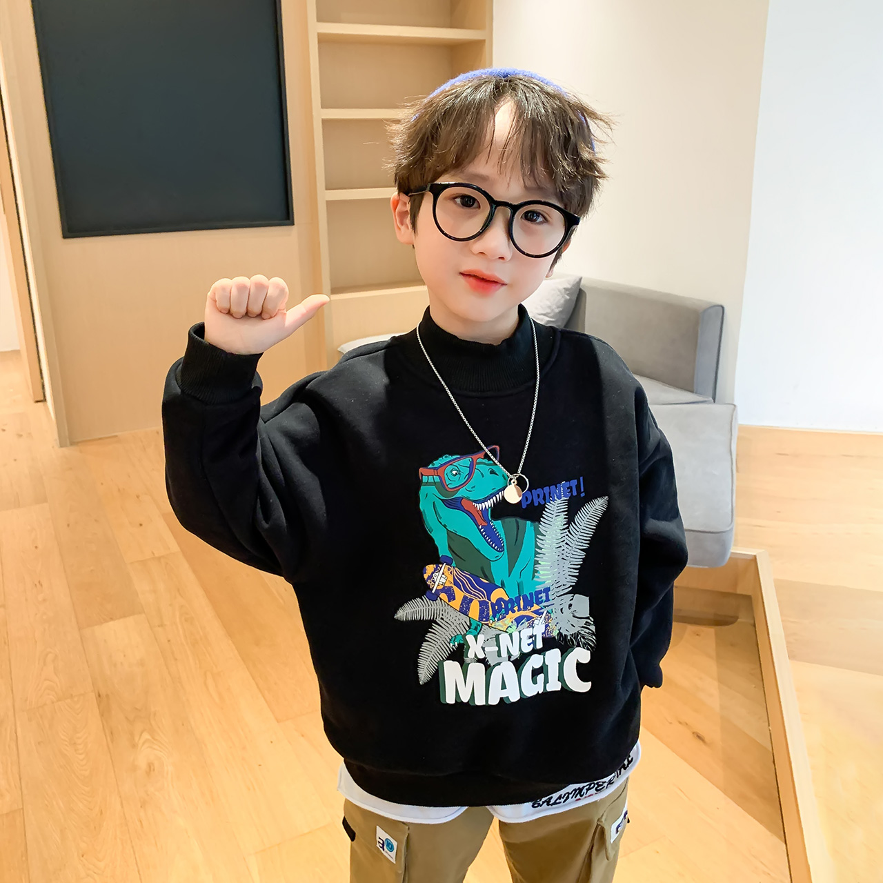 Zuoxi boy plus velvet sweater children's half-high collar thick top middle big boy dinosaur bottoming shirt 2022 new winter