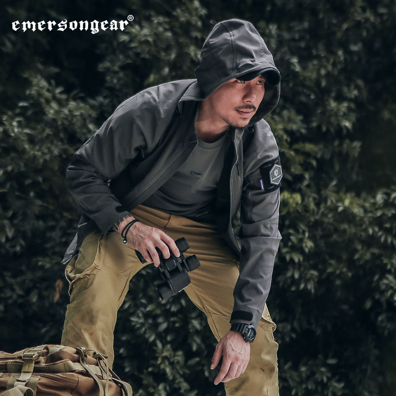 Emerson autumn and winter New "Fog shadow" outdoor soft shell coat male commuter hooded windbreaker anti-splashing tactical suit
