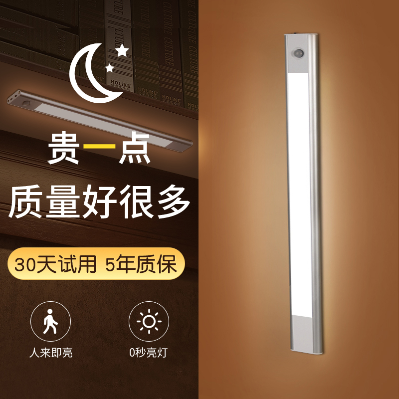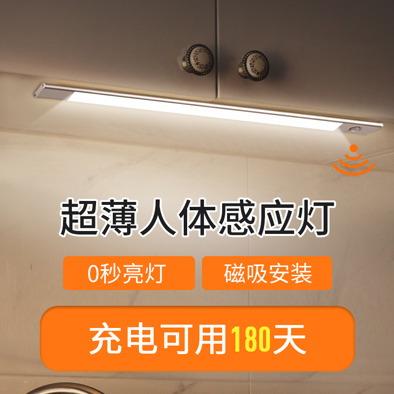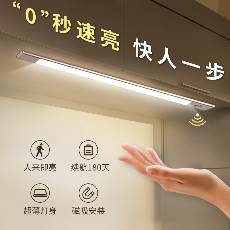 LED overall cabinet light with smart human body induction rechargeable wardrobe Shoe cabinet Wine Cabinet Kitchen light Bar Wireless Self-adhesive