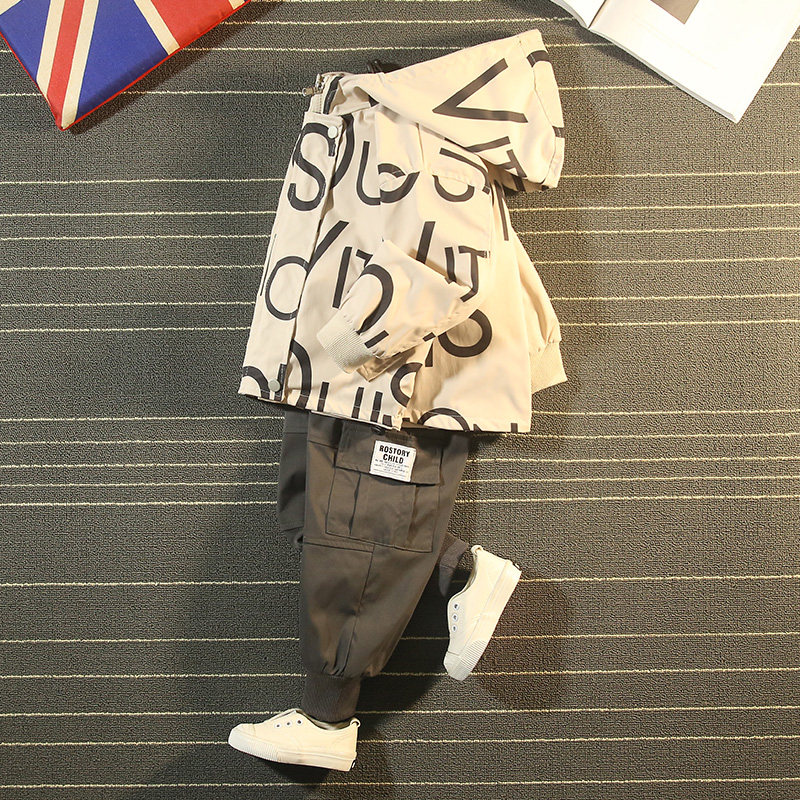 Boy Clothing Boy Fall Suit 2022 New Handsome Fashion Boy CUHK Boy Gifts Gift Foreign Clothes Two Sets
