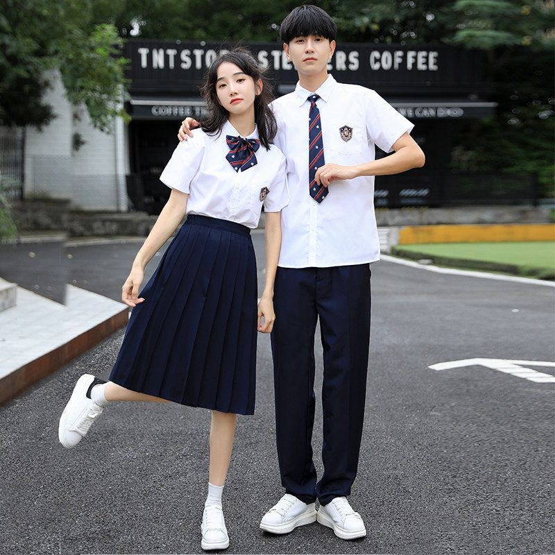 Graduating class uniform set British college style school uniform middle school students short sleeves JK shirt saffron pleated skirt long skirt summer