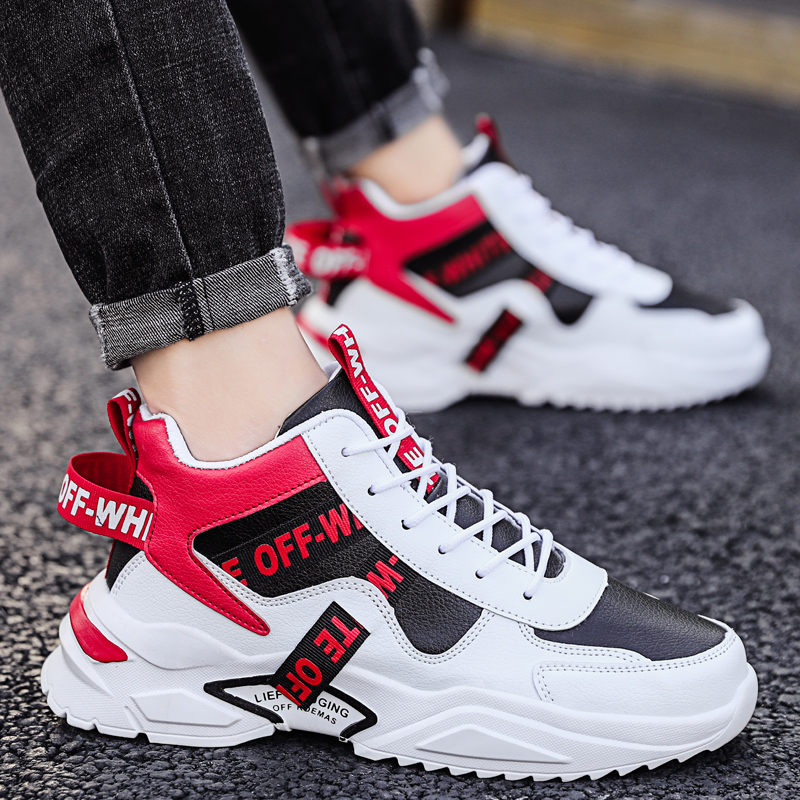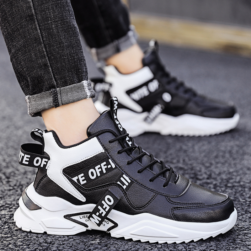 Pull back boys shoes autumn and winter high-top boy dad shoes middle and big children's leather waterproof children's sports small white shoes