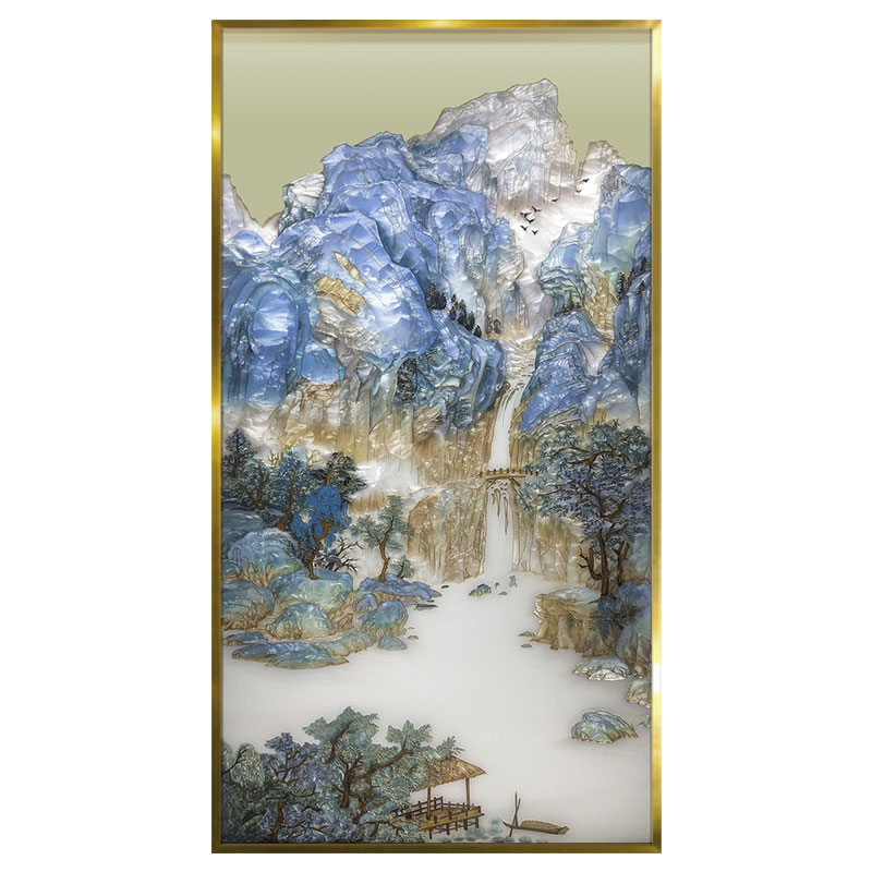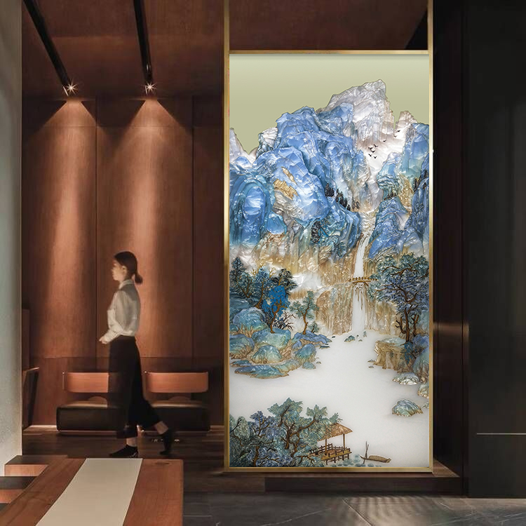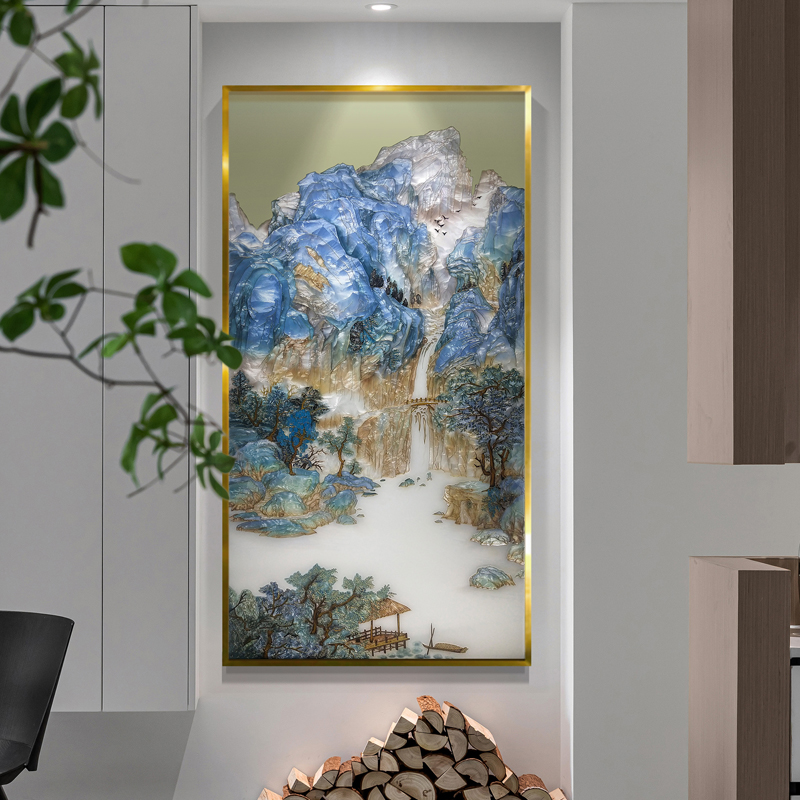 Enamel color decorative painting new Chinese porch dining room hanging painting modern light luxury living room background wall mural Lake Pavilion Qingxia