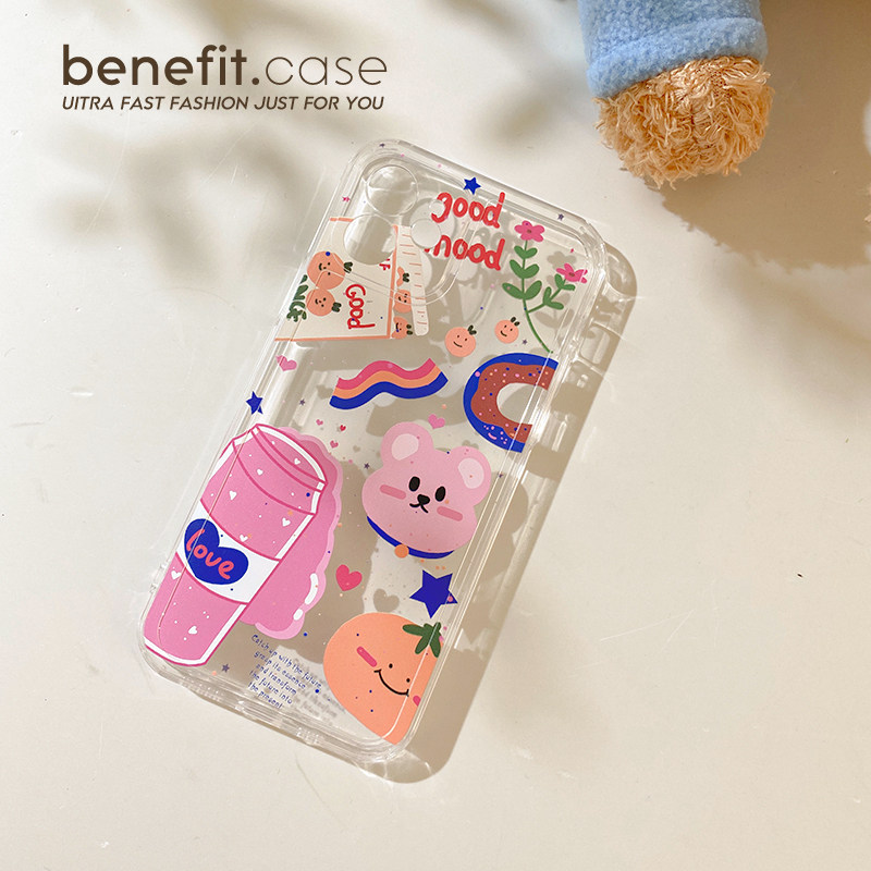 Benefit cartoon creative doughnut small bear suitable for apple 13promax transparent mobile phone protection shell iphone12mini protective sleeve xsmax cute xr anecdote