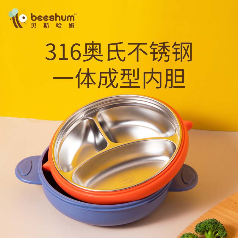 Beeshum Injection Bowl Stainless Steel Constant Temperature Baby Sucker Different Plate Children's Supplementary Bowl