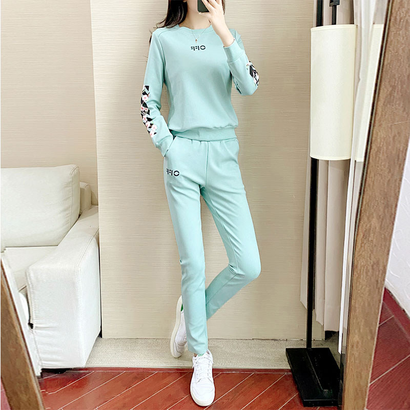FZOG sports suit women 2022 Spring new round collar breathable mid-aged casual sportswear two sets of damp