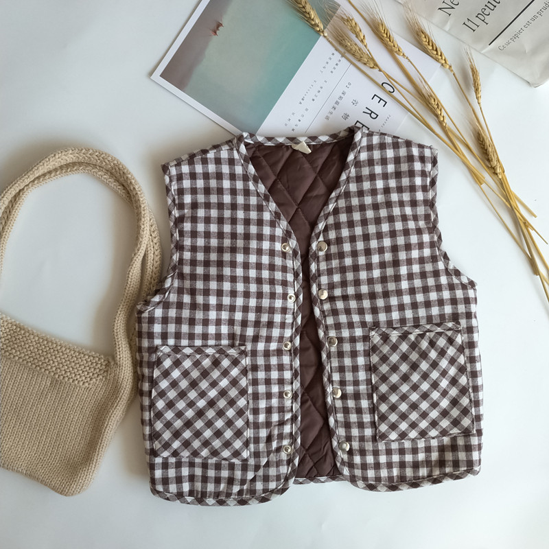 Autumn and winter day Department Black and white checkered cotton waistcoat male and female child retro art Thickening Vest Children minimalist Shoulder Tide