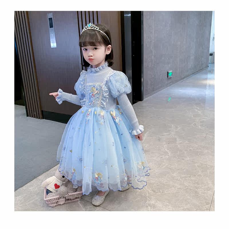 Girl Snowy Chic Edge Love Tha Princess Skirt Baby Birthday Gown Dress Little Girl Embroidered Sweater Knit Foreign Dress