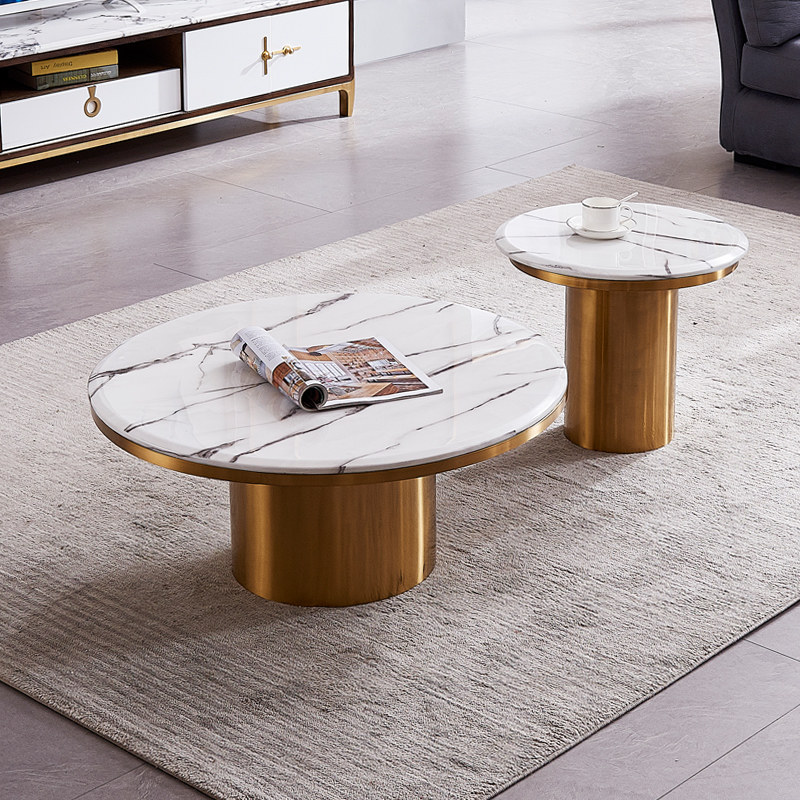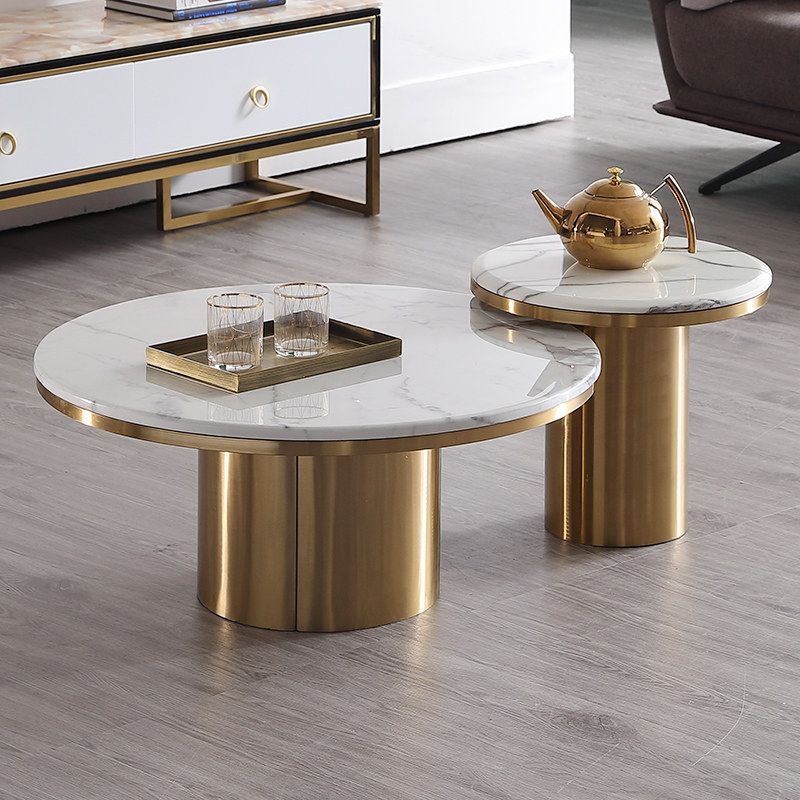 Metal stainless steel living room tea few combinations of light luxury round tea few marble round tea