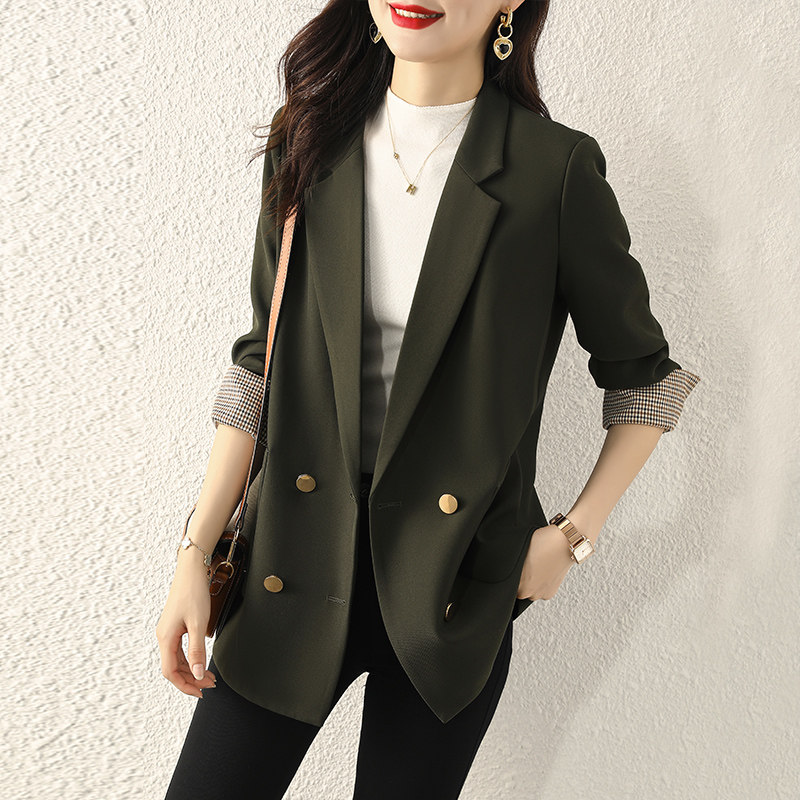 Double-row buckle curry suit jacket Women's spring autumn 2021 new Korean version Inn Wind Leisure Little Subsuit jacket