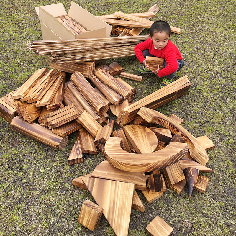 Kindergarten outdoor large-scale construction carbonized super large anti-corrosion bricks solid wood construction outdoor charcoal burning building blocks toys