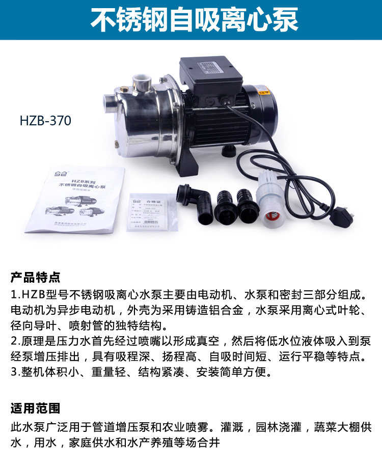 Senson HZB Stainless Steel Self-Priming Pump Centrifugal Pump Silent Pipe Booster Pump Seafood Breeding Cycle Helper
