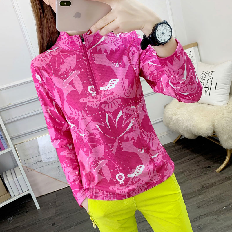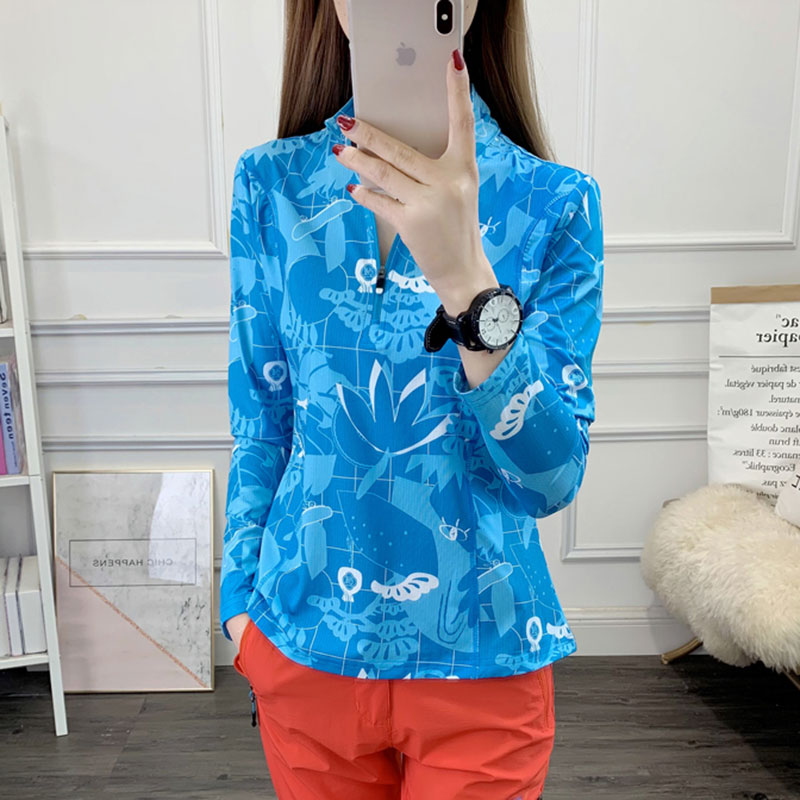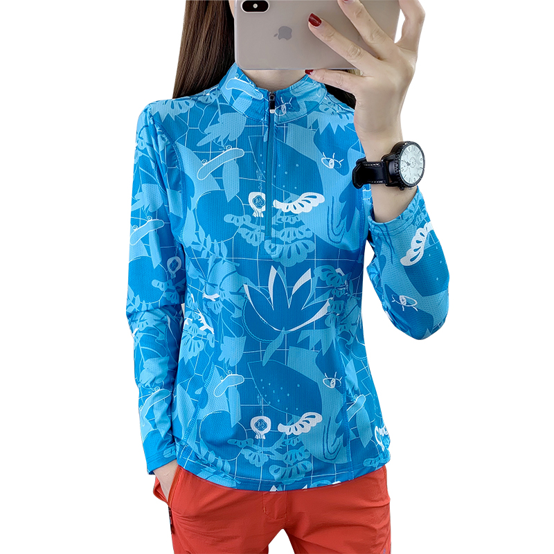 Outdoor speed dry long sleeve T-shirt blouses women's elastic body slim sun protection Sweat Breathable Sports Climbing Hiking