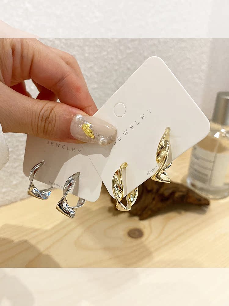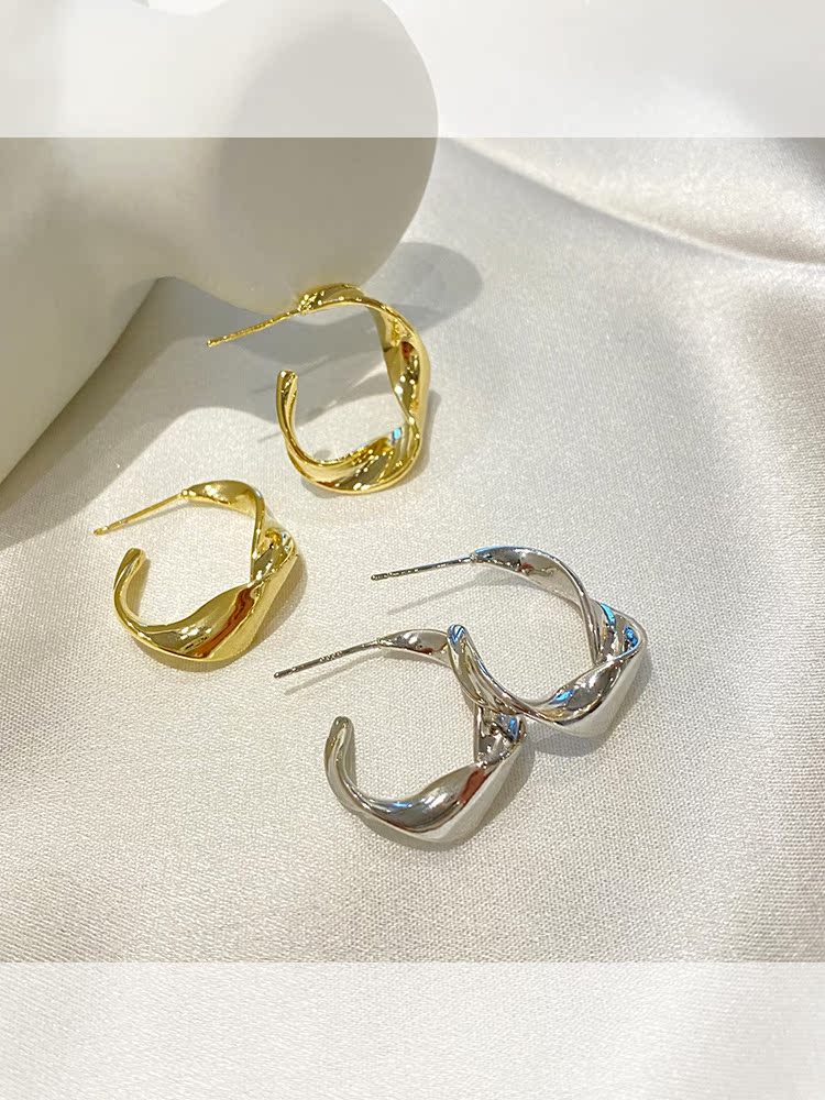 Twisted earrings high-end unique design sense earrings 2021 new trendy silver earrings female Korean texture earrings
