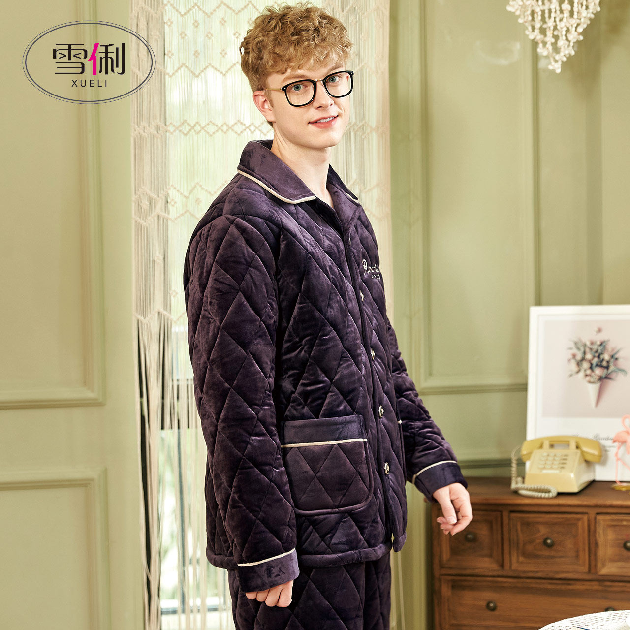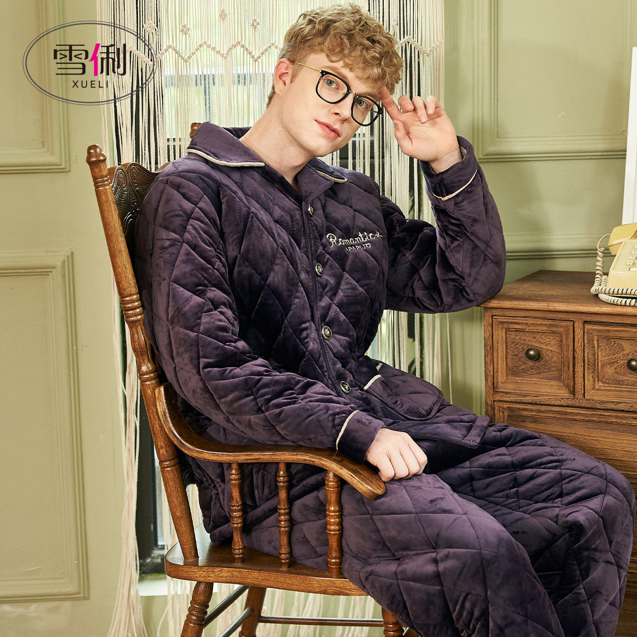 Snow Li men's pajamas autumn winter coral velvet three-layer cotton pajamas winter thickened plus flannel homewear men