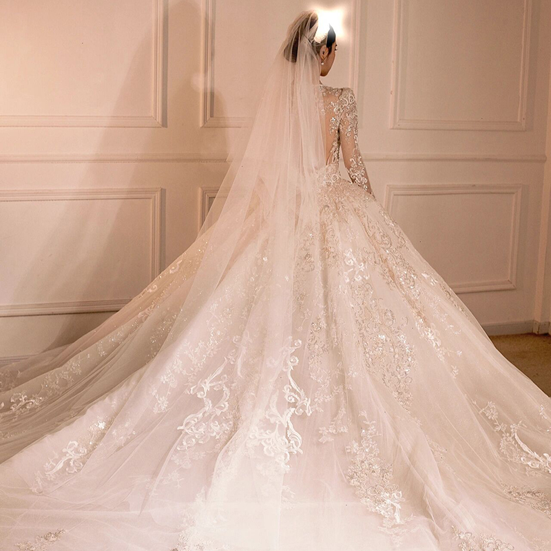 Long-sleeved French wedding dress 2022 new bride main yarn dress female retro heavy industry luxury large tail high-quality texture