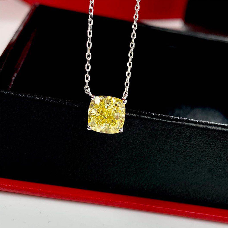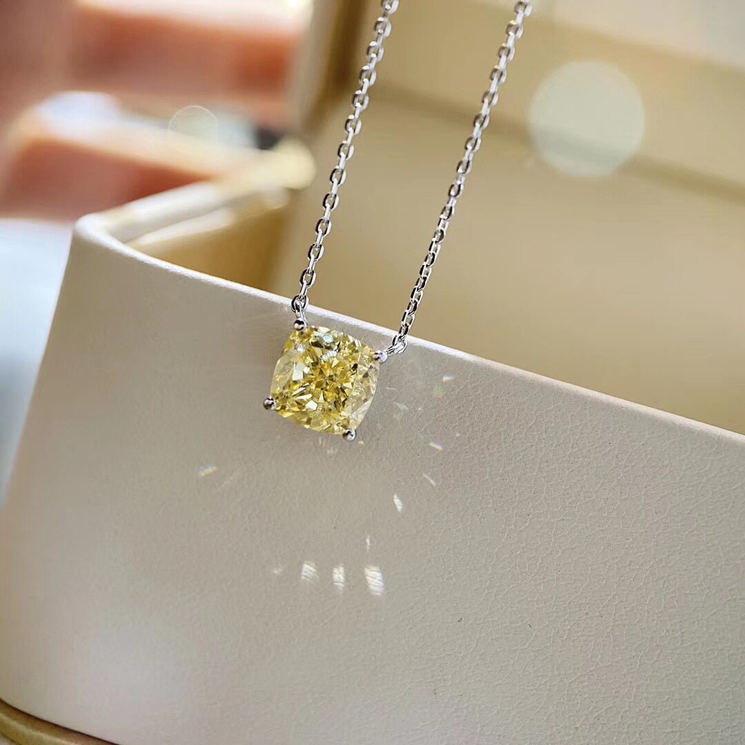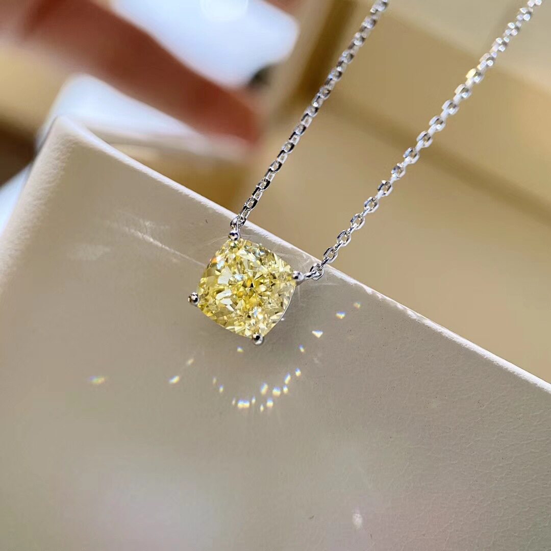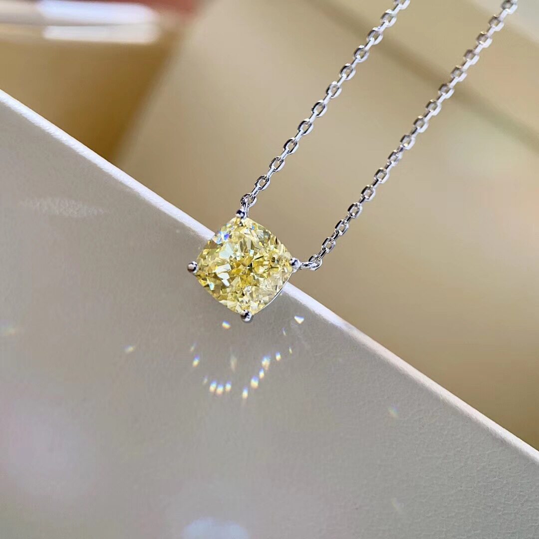 Mossan Diamonds 18K Platinum 2 Carat Yellow Diamond Princess Square Four Paws Necklace AU750 Trendy Fresh Collarbone Chain