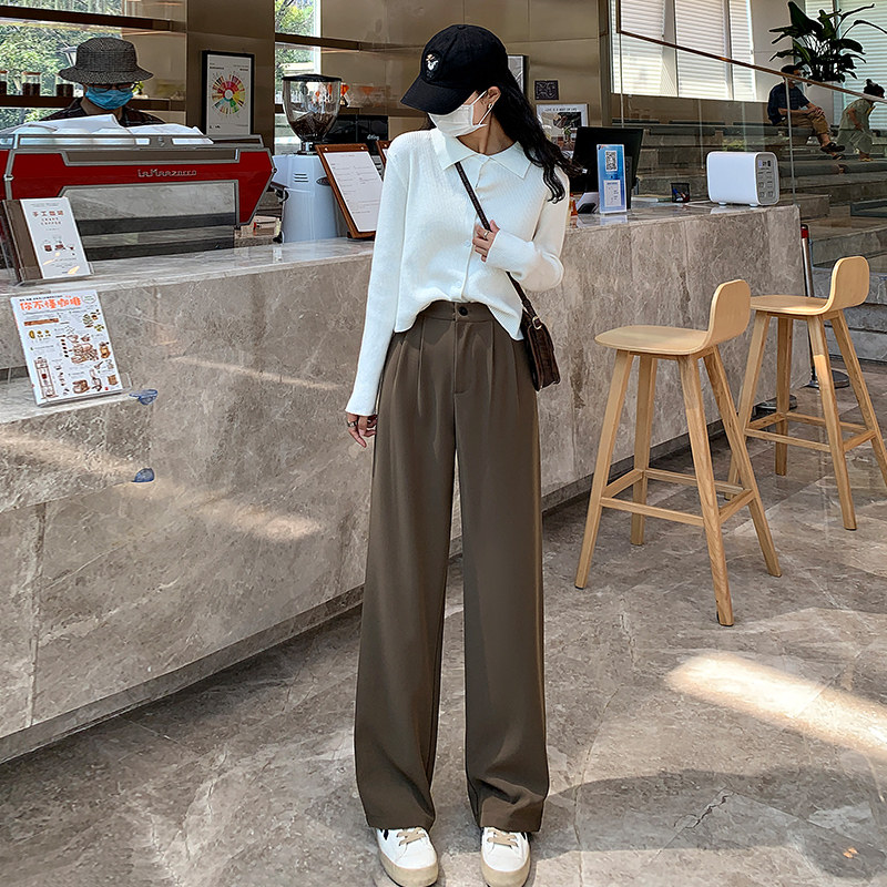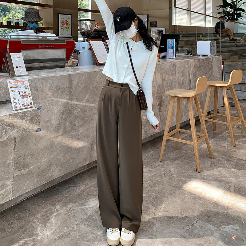 Brown brown wide-leg pants women's summer thin section 2022 new small drape mopping pants high waist straight suit pants
