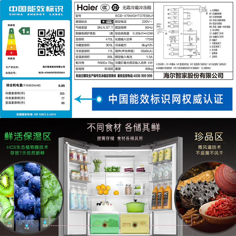 The Haier Ice Cold Suit BCD-470WGHTD7ES9U1 Ice for DS0109LHS6D1 Ice