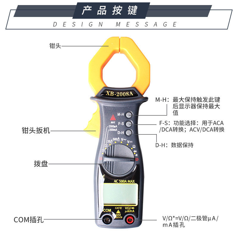 Handheld digital display detector pliers-shaped current card table XB2008A