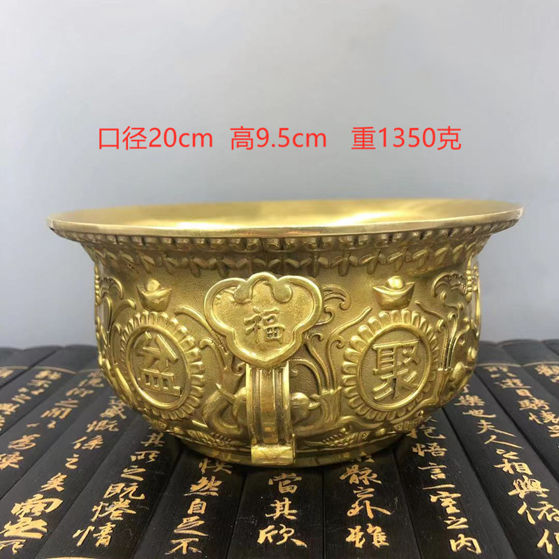 Pure copper cornucopia ornaments to accumulate wealth Chinese living room desktop offering incense burner home TV cabinet decoration gift wooden seat