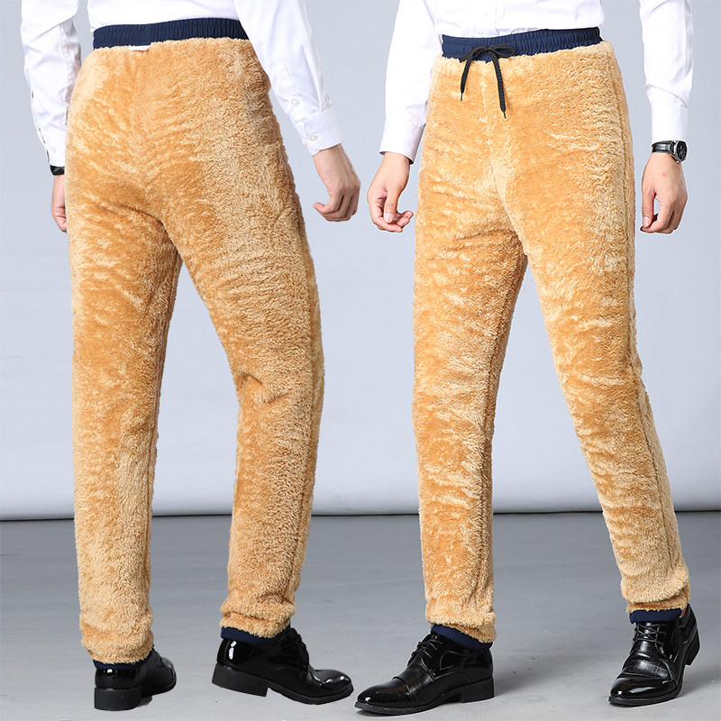 Dads Winter outside wearing cotton pants men's three layers plus suede thickened mid-aged loose high waist large size anti-chill warm pants