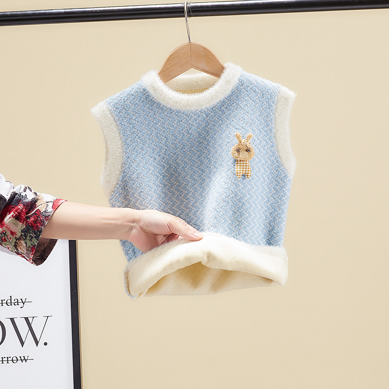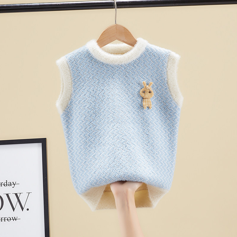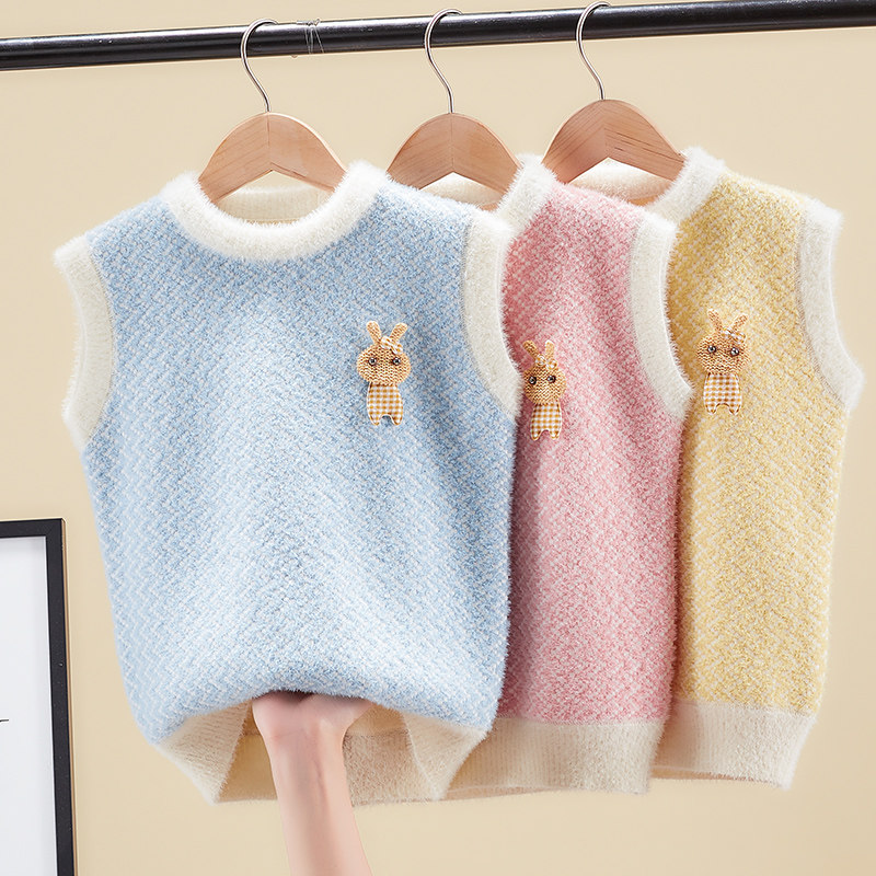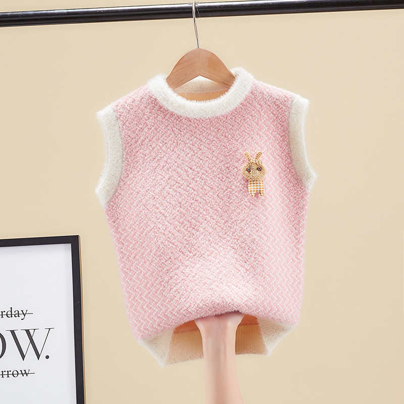 Girl Knit Vest 2021 Spring Autumn New Foreign Pie Children Waistcoat Vest Water Mink Suede Girl Baby Cub Shoulder