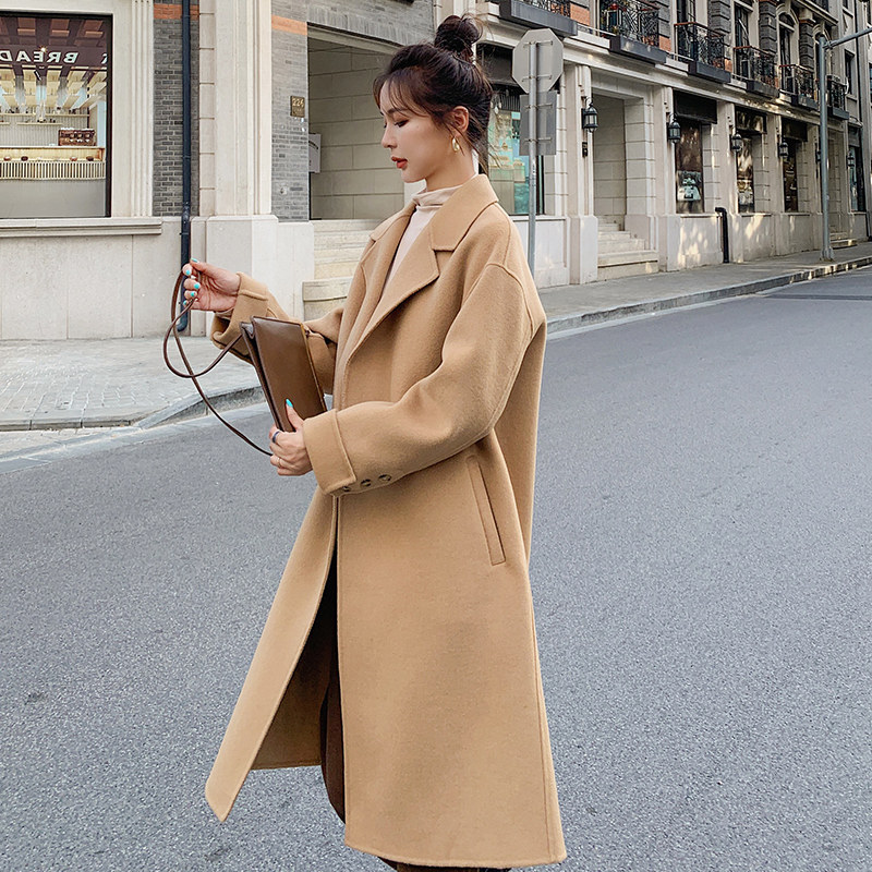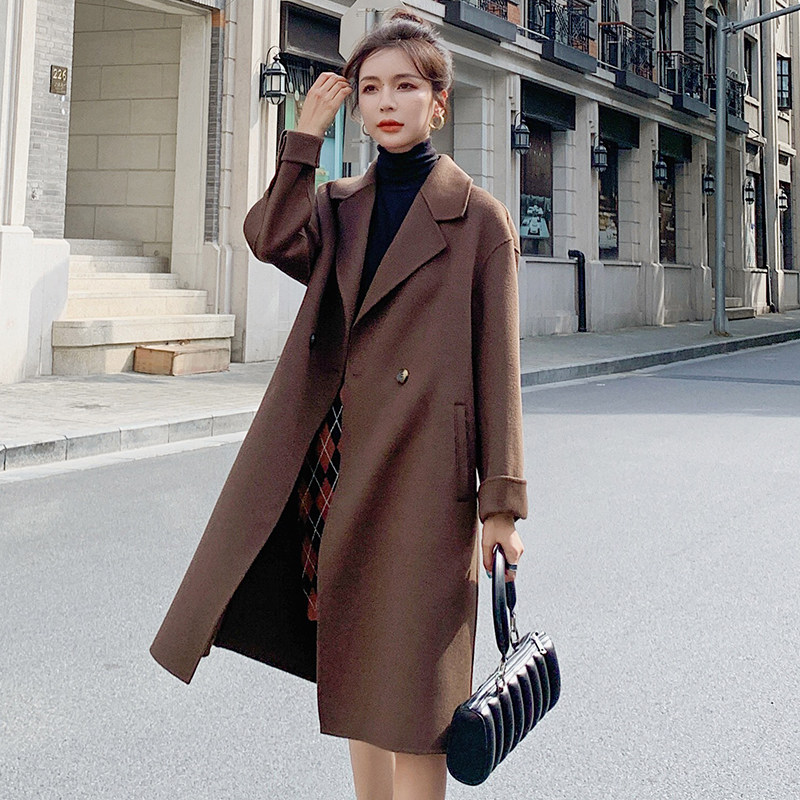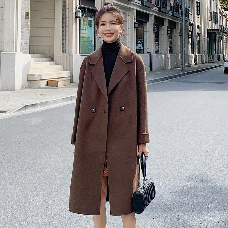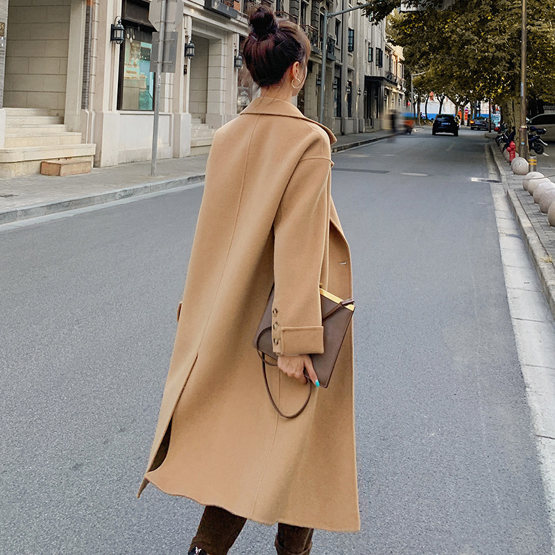 Double face cashmere big coat female medium long version Korean version over kneecap wool, 2021 autumn new high-end fur coat