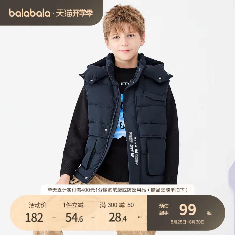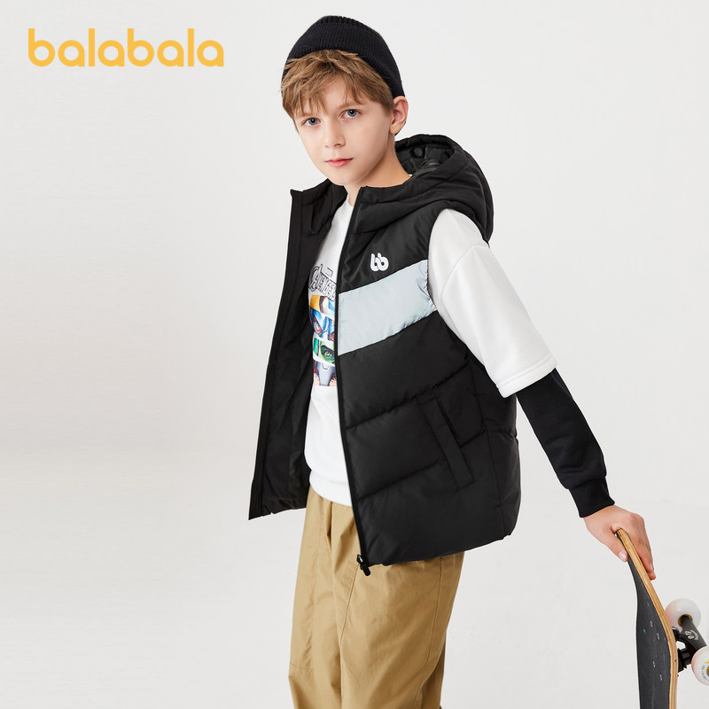 Ballabala duvet jacket winter thickened jacket big boy vest down waistcoat with cap boy kan shoulder movement-Taobao