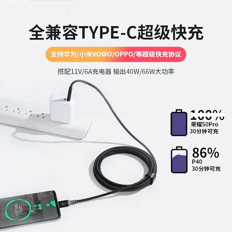 type-c data line tpyec charging line 6A device 66w super fast charge 5A phone type USB to C flash charge